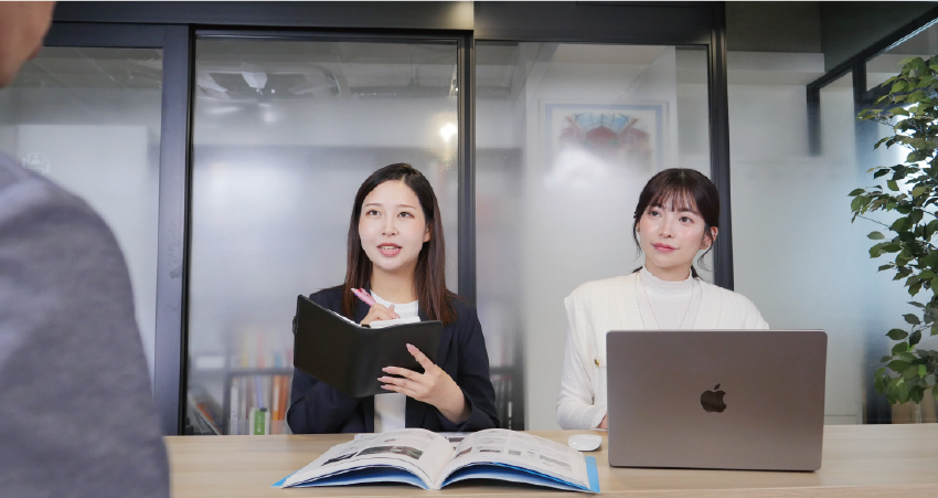 初回の打ち合わせやプレゼンに同席し、進行補助や議事録作成をサポート。事前の提案内容整理やヒアリング準備まで支援することで、デザイナーは制作に専念できます。また、クライアントとの意見の食い違いや納期調整などに関しては、トラブル同席サポートとして解決策の提案や交渉の立ち会いも実施。相手との信頼関係を崩さずに、安心してコミュニケーションを取れる環境を整えます。